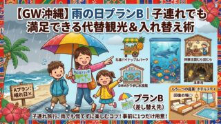 GWの沖縄は梅雨入り間近で天気が読みにくい時期。子連れ(8歳・10歳)でも当日迷わない「雨の日プランB」の作り方と、北部・中部・南部の代替スポット(屋内/体験/買い物)&ホテルステイの切り替え術を1記事にまとめました。