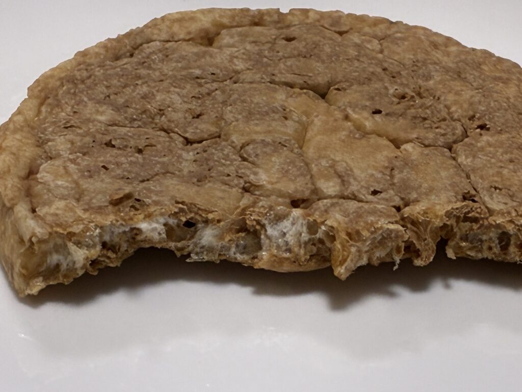ひと口でまず黒糖の柔らかい香りがふわっと。表面はしっとり、中はほどよくサクッ。完全な“パリッ”ではなく、少ししんなり子どもでも食べやすい柔らかさです。