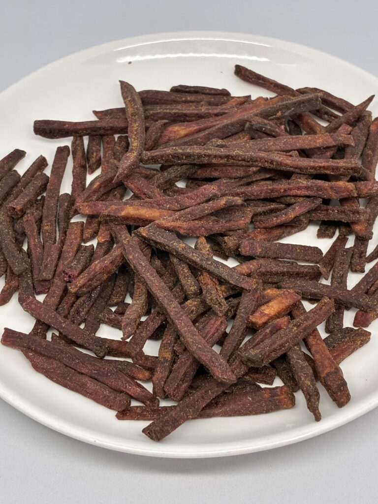 「カリカリ」食感の紅芋の芋けんぴ。ほんのり黒糖の味が感じられるクセになる一品です。