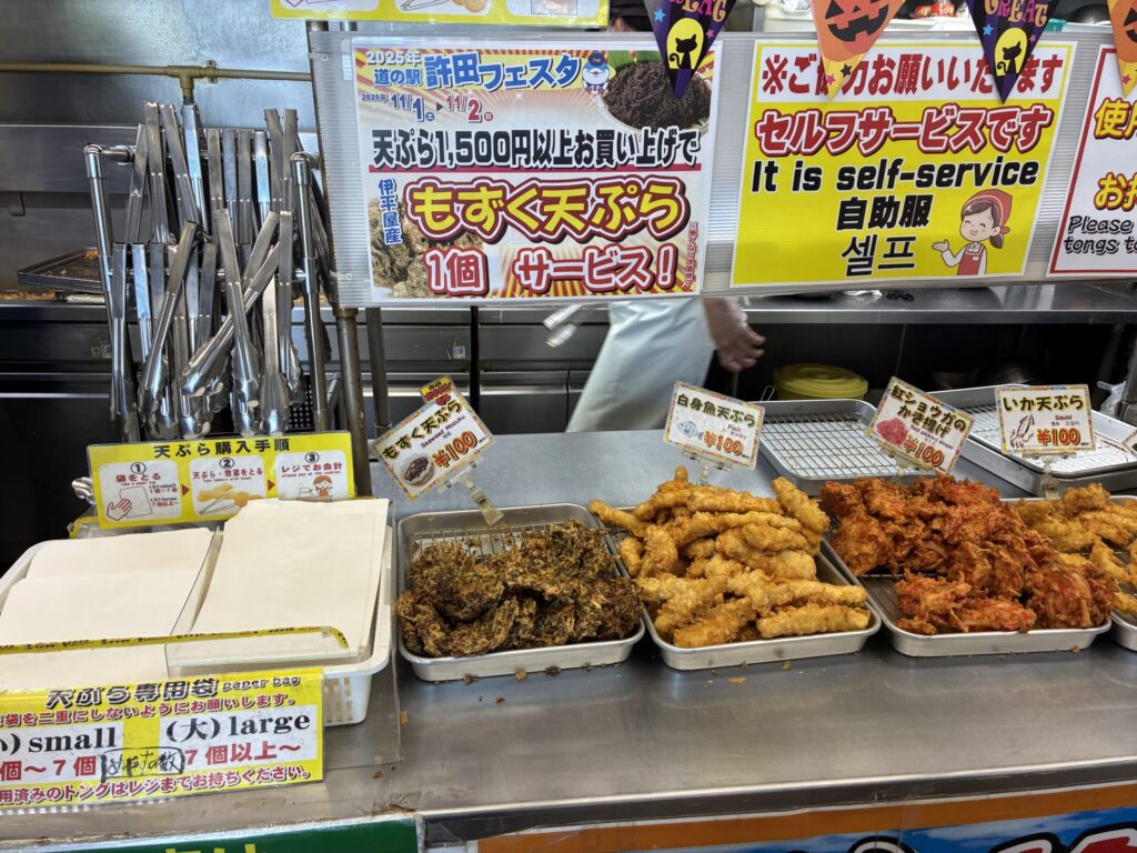 ここでしか味わえないご当地グルメも見逃せません。特に人気なのが、「もずく天ぷら」や「大東寿司」。どちらもその場で楽しめるので、旅の満足度が一気にアップします。