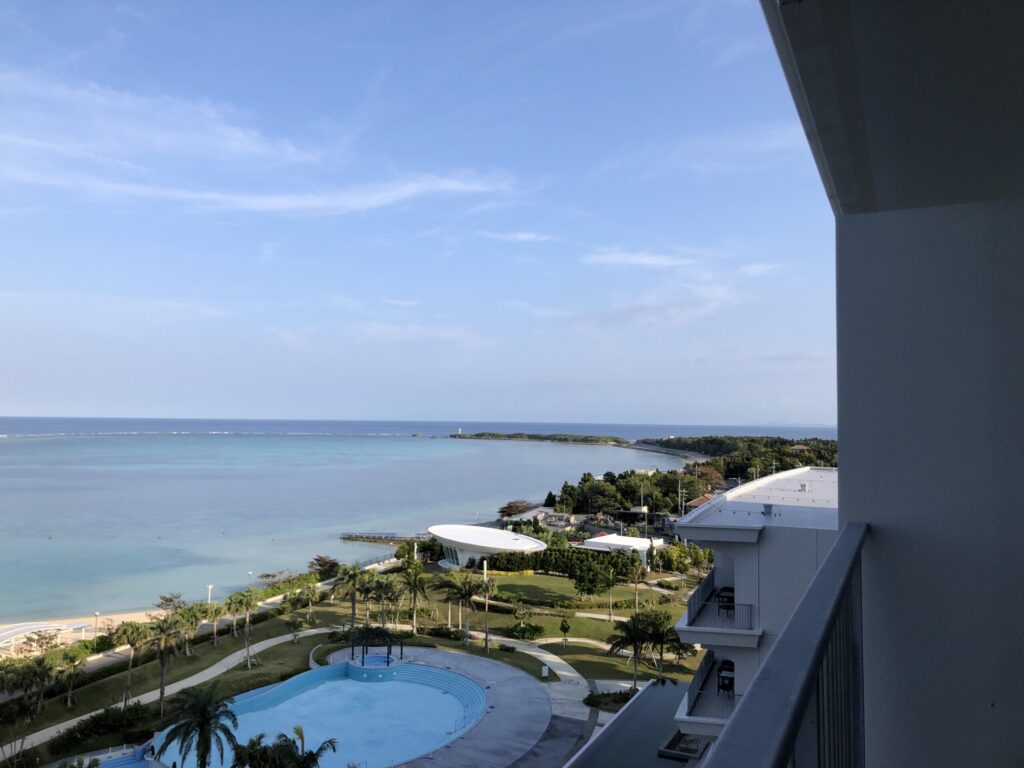 それなら、「オリオンモトブリゾート&スパ」がおすすめだよ。「立地」「施設」「リラックス」の三拍子が揃ったホテル。一度は絶対宿泊してほしいな。