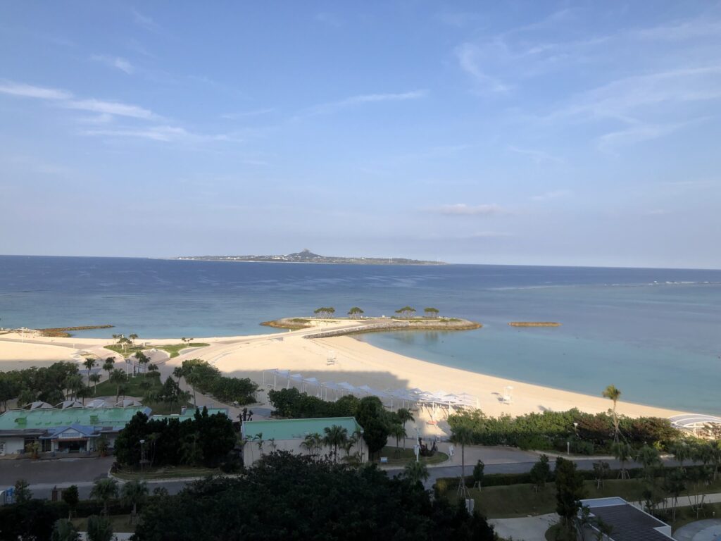 全室オーシャンビューで、部屋からエメラルドビーチと伊江島を一望できます。