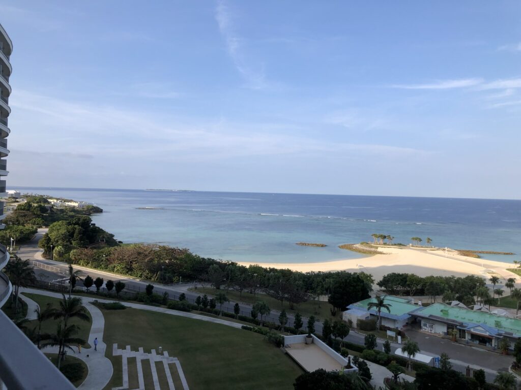 実際に宿泊した際には、チェックイン後のウェルカムドリンクでホテルオリジナルビールを堪能。コク深い味わいに癒され、子どもたちはシークワーサージュースでニコニコ笑顔。広々とした客室から眺めたサンセットは息をのむ美しさ。さらに、屋内外プールでは子どもたちが大はしゃぎ、夜はジュラ紀温泉「美ら海の湯」の温泉とサウナで体が整い、旅の疲れがスッと抜けました。